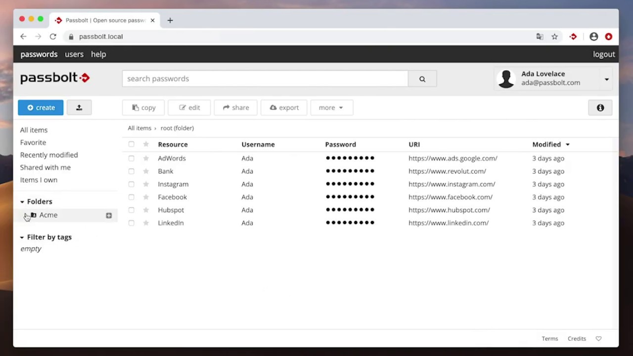 I can create folders and add new accounts bot I don’t know how to move the passwords inside.